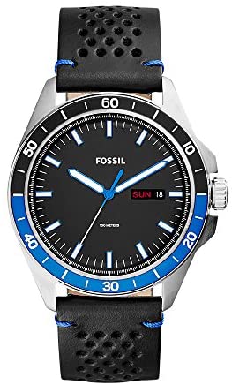 Fossil Herrenuhr Blue Dive 3 Zeiger, Zweifarbige und Armband aus schwarzem Edelstahl, Edelstahl, Set