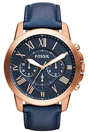 Product DescriptionWith rich blue leather and punctuated Roman numerals, our classic Grant watch has everything you need for a best-dressed season. This Grant watch also features a chronograph movement. Modeled after vintage clocks, our Roman numerals are uniquely designed to provide artistic balance to the dial. In order to create a sense of depth, we also layered the sub-eyes over the numerals, which gives them the effect of being cut off.Box ContainsWatch, packaging and warranty booklet