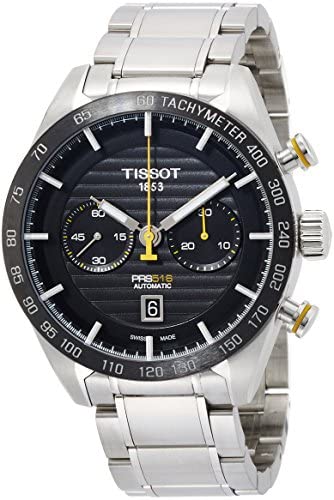 Tissot Watch PRS516 Automatic Chronograph. Tissot PRS 516 series takes time to reflect on its 1960s motorsport inspired origins. Wearers of the Tissot PRS models are equipped with timepieces integrating the innovations in Swiss watchmaking to complement nostalgic design elements from the racetrack. On some of these models, the movement can be seen in action through the distinctive case back shaped like the steering wheel of a pioneering sports car. Supplier Model Number T1004271105100