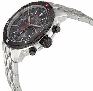 Multitasking mens Tissot PRS200 watch in stainless steel, complete with date function, chronograph and Swiss Quartz movement.