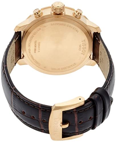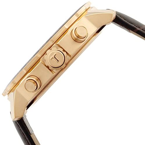 This men's Tissot Quickster watch is made from PVD rose plating and is fitted with a quartz movement. It is fitted with a brown leather strap and has a white dial. The watch also has a date function.