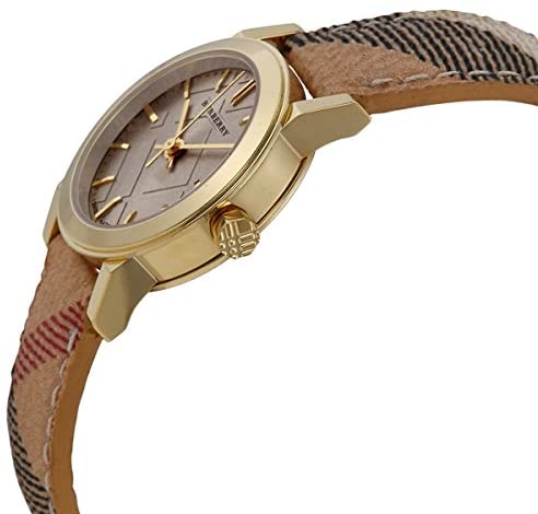 Brand Name BURBERRY Model number BU9219 Part Number BU9219 Item Shape Round Case material Stainless Steel Case diameter 26 millimetres Case Thickness 7 millimetres Band Material textile Band width 14 millimetres Band Color Multicolour Dial color gold Item weight 499 Grams Movement Quartz Display Type Analog