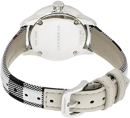 Brand Name BURBERRY Model number BU10103 Part Number BU10103 Item Shape Round Dial window material type Sapphire Case diameter 32.00 Band Material textile Band width 22.00 Band Color Brown Dial color White Movement Quartz Display Type Analog