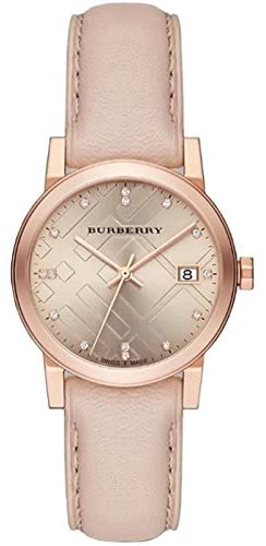 Brand Name BURBERRY Model number BU9131 Part Number BU9131 Item Shape Round Case material Stainless Steel Case diameter 34 millimetres Case Thickness 8.00 Band Material Leather Band width 18 millimetres Band Color Beige Dial color Gold Movement Quartz Display Type Analog