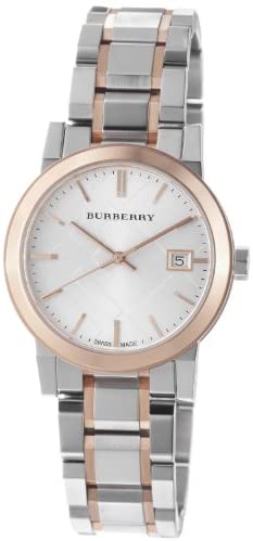 This ladies Burberry The City watch has a two-tone steel and rose plate case and is fitted with an analogue quartz movement. It is fitted with a two tone bracelet and has a white dial. The watch has a date function.