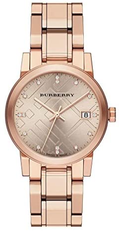 Brand Name BURBERRY Model number BU9126 Part Number BU9126 Item Shape Round Case diameter 34 millimetres Band Material Stainless Steel Band width 18.00 Band Color Gold Dial color Gold Movement Quartz Display Type Analog