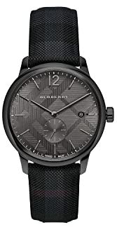 Brand Name BURBERRY Model number Burberry-BU10010 Part Number Burberry-BU10010 Item Shape Round Dial window material type Sapphire Case diameter 40 millimetres Case Thickness 9 millimetres Band Material Nylon Band Color Black Dial color black Special features date, second-hand Item weight 907 Grams Movement Quartz Display Type Analog
