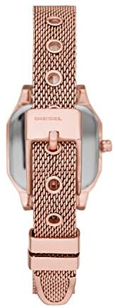 Diesel Women's Only Time Watch from the Callie Collection. Watch with stainless steel case with mixed rose gold finish measuring 24 mm and thickness of 8 mm. Model with clear glass, rose gold dial and stainless steel bezel with satin finish in rose gold. Stainless Steel Mesh Bracelet Watch With Rose Gold Matte Finish With Barb Buckle And Distance Of 16 Mm. Model With Quartz Movement With 3 Balls And Water Resistance Of 3 Atm. The Reference Is Dz5593