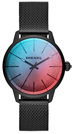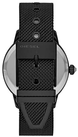 Brand Name Diesel Model number DZ5596 Part Number DZ5596 Item Shape Round Dial window material type Mineral Case material Stainless Steel Case diameter 38 millimetres Case Thickness 11 millimetres Band Material Stainless Steel Band width 18 millimetres Band Color Black Dial color Silver Item weight 120 Grams Movement Quartz Water resistant depth 50 bar Display Type Analog