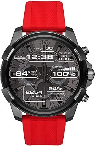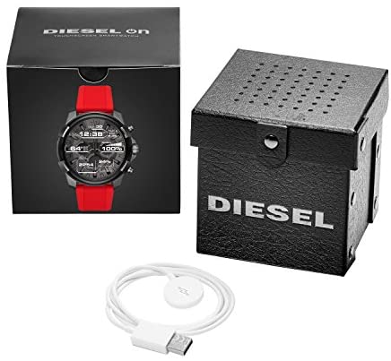 Product DescriptionPersonalised style meets elevated functionality with the Diesel on full guard touchscreen Smartwatch. A black IP case is paired with a brown leather strap and a customizable touchscreen dial. Full guard stands out with the Diesel on interactive effects. You can choose from three modes to keep up to date with animated notifications from weather, activity, and do not disturb mode. Powered by Android Wear, this Smartwatch connects with your favorited apps and is compatible with Apple and Android smartphones. With built in fitness tracking through Google Fit, you can view calories burned, steps and distance travelled. Receive notifications, such as calls and alerts, at a glance as well. Fully personalize your Smartwatch by selecting or customizing the Smartwatch face of your choice and changing out the straps to match your activity or look. The Smartwatch features activity tracker and battery life up to 24 hours. Based on usage: The case material is stainless steel, no heart rate, sleep monitor, is interchangeable, provides notifications, and features touchscreen.Box ContainsWatch, Wireless Charger (USB Type), Quick Start Guide