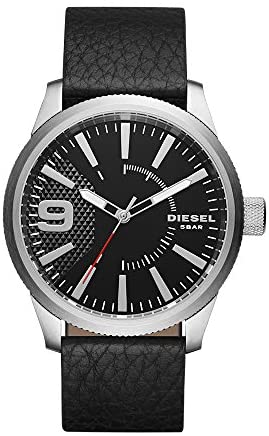 Product DescriptionWear the unrivalled expression of DIESEL style and design evolution on your wrist with the Rasp watch. A black leather strap and machine knurled stainless steel case let the brushed black multi layered asymmetric dial shine.Box ContainsWatch, packaging, and care instruction booklet