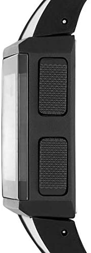 The digital watch chopped watch with rectangular case has a negative display and a white silicone strap with embossed logo.