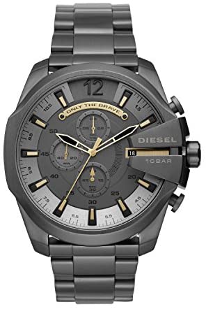 Product DescriptionThis gunmetal IP DIESEL Mega Chief watch features a matte grey chronograph dial with an “Only the Brave” tag and is complete with a single link bracelet.Box ContainsWatch, packaging and warranty booklet