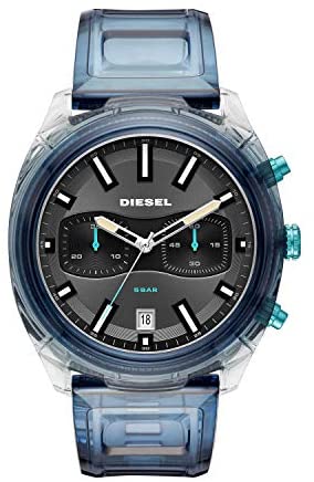 Product DescriptionThis 48mm Tumbler watch features a grey sunray dial with white stick indexes, chronograph movement and blue silicone strap.Box ContainsWatch, packaging, and warranty booklet