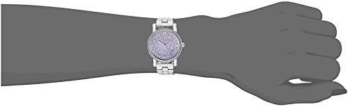 Product descriptionA sleek stainless-steel case, chic lavender pavé-covered dial with Roman numeral indexes and a 3-link stainless-steel bracelet create a look that's perfect for her.Box ContainsWatch, packaging, and warranty booklet