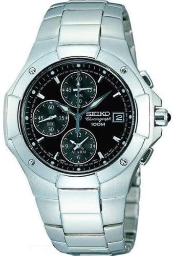 Brand Name Seiko Model number SNA341 Part Number SNA341 Case diameter 39 millimetres Case Thickness 9 millimetres Band Material Stainless Steel Band width 18.5 millimetres Band Color Silver Dial color Black Special features calendar, alarm Item weight 500 Grams Movement Quartz Display Type Analog