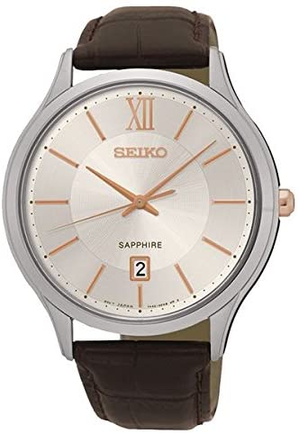 Brand Name Seiko Model number SGEH55P1 Part Number SGEH55P1 Item Shape Round Dial window material type sapphire glass Case material Stainless Steel Case diameter 42 millimetres Case Thickness 8 millimetres Band Material Leather Band width 12 millimetres Band Color Brown Dial color Silver Special features calendar Item weight 80 Grams Movement Quartz Display Type Analog