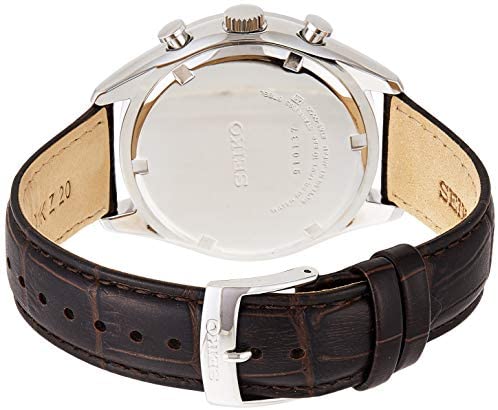 Seiko Neo Classic Watch SSB293P1 Gold ManThis Seiko SSB296P1 Watch, oriented for Men, has the Steel case, with Circular shape and Black color. The Strap is of Black Leather, and the bezel of Pink color. The crystal is Hardlex, the Quartz movement, and the Analog display. It belongs to the Neo Classic collection. It can submerge up to 100 M. Among its functions, the following stand out: Chronograph and Calendar. It has a Classic style. Diameter: 42.20 mm