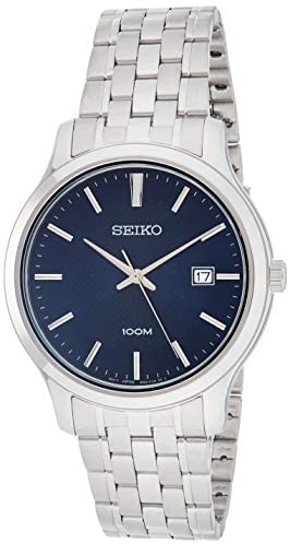 Seiko - Classic Neo Seiko originated in Tokyo where the first official watch factory was opened. Seiko is known worldwide for its precision and innovation in timekeeping. The Seiko name ensures careful work and a distinctive style. This distinctive heritage, presented at a fair price, gives Seiko an unforgettable value. This beautiful women's watch from Seiko is characterised by its elegant sporty design. Your new dream watch is protected by a scratch-resistant Hardlex mineral glass. Technical data Brand: Seiko Manufacturer's number: SUR291P1 EAN: 4954628228598. Target group: men. Movement: Quartz. Display format: analogue. Dial colour: blue. Case shape: round. Case material: stainless steel. Casing colour: silver. Case width: 41 mm. Lug width: 20 mm. Watch glass: Hardlex Crystal. Band Material: Stainless Steel Bracelet colour: silver. Clasp: folding clasp and safety handle. Water resistance: 10 ATM. Functions: date display.