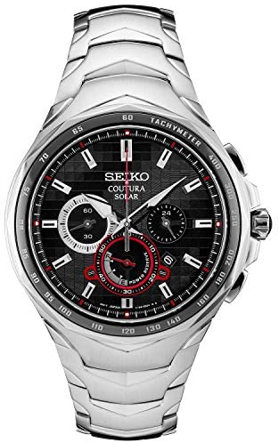 Brand Name Seiko Model number SSC743 Part Number SSC743 Item Shape Round Dial window material type Sapphire Crystal Case material Stainless Steel Case diameter 45.5 millimetres Case Thickness 12.28 millimetres Band Material Stainless Steel Band length Mens Standard Band width 20 millimetres Band Color Silver Dial color Black Bezel material Stainless Steel Bezel function Stationary Calendar Date Special features Textured Black Dial, Solar, Powered by Light Energy, 6 Month Power Reserve Once Fully Charged, Power Reserve Indicator, Chronograph Measures up to 60 Minutes of Elapsed Time in 1/5 Second Increments, 24 Hour Indicator, Date Calendar, Lumibrite Hands & Markers Movement Japanese Quartz Display Type Analog