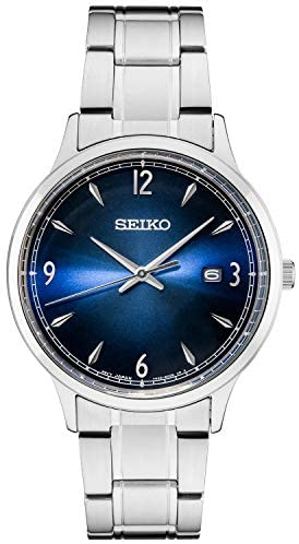 Blue Gradation Dial with Sunray Finish, Date Calendar, 100 Meters Water Resistant, Men's & Ladies Pair, Elegant applied markers and arabic numerals |