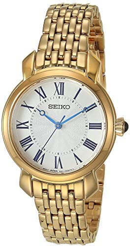 Brand Name Seiko Model number SUR626 Part Number SUR626 Item Shape Round Dial window material type Hardlex Case material Gold Tone Case diameter 29.2 millimetres Case Thickness 8 millimetres Band Material Gold Tone Band length Womens Standard Band width 12 millimetres Band Color Gold Dial color Silver Bezel material Gold Tone Bezel function Stationary Item weight 62 Grams Movement Japanese Quartz Display Type Analog
