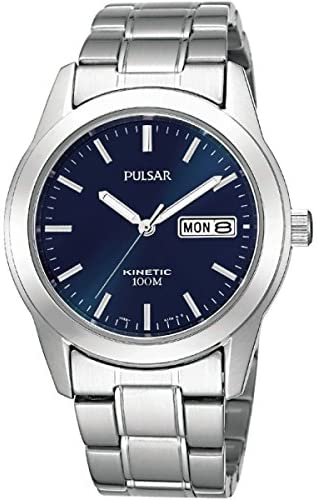 Specifications of Pulsar Kinetic Watch with Stainless Steel Bracelet, Day and Date Display PD2025X1