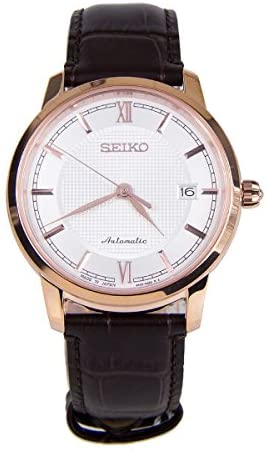 Brand Name Seiko Model number SRPA16J1 Part Number SRPA16J1 Item Shape Round Dial window material type Sapphire Crystal Case material Gold Plated Case diameter 39.20 Case Thickness 11.00 Band Material Leather Band width 20.00 Band Color Brown Dial color white Special features Datum Item weight 500 Grams Movement Automatic Display Type Analog