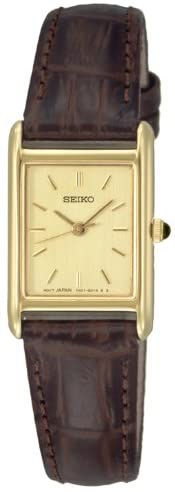 Brand Name Seiko Model number SXGN54P1 Part Number SXGN54P1 Item Shape Square Dial window material type Hardlex Crystal Case material Stainless Steel Plated Case diameter 17 millimetres Case Thickness 7 millimetres Band Material Leather Band width 14 millimetres Band Color Brown Dial color gold Movement Quartz Display Type Analog