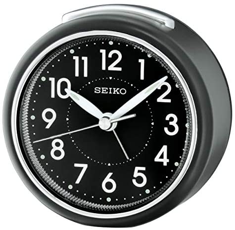 This clock Seiko Clocks Bedside watch has a plastic/resin plastic/resin case and is powered by a quartz movement. It is fastened with a black n/a strap and has a black dial. Includes alarm function.