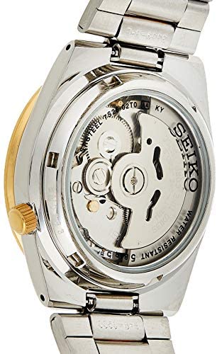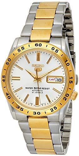 Product DescriptionShow off your laid-back personality with this casual Seiko timepiece. This no-nonsense watch features a silver stainless steel case with gold stainless steel bezel and Gold/silver stainless steel band. This watch also sports a bold white dial and gold details, allowing the watch to function as both a fashionable accessory and a valuable timekeeping tool. Additional features include luminous hands and 50 meter water resistance.Box ContainsWatch, Presentation box, Watch Cushion, Guarantee