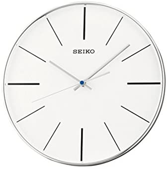 Black plastic housing, Polished Silver Glass Curved Edge, Diameter: 11.81 inch (30 cm), height: 1.38 (35 mm) inch, 3–hand quartz movement White dial with black indexes, hands, Polished Includes 1 AA battery