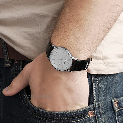 From the Classic collection. Stainless steel case with silver dial, time and calendar function only. Black leather strap with pin buckle Technical features: - Movement: quartz. - Case diameter: 37 mm. - Case Thickness: 5.9 mm - Waterproof: 30M - 3-year limited warranty