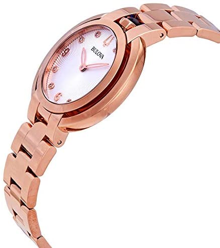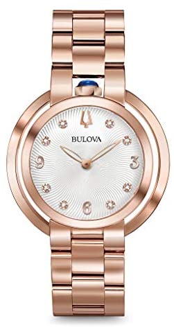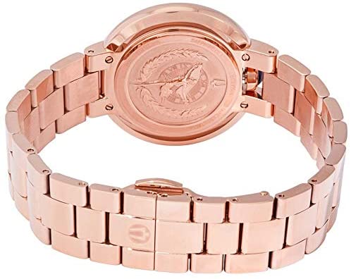 Product DescriptionLegendary heritage reinvented in rose gold-tone stainless steel case with synthetic blue spinel cabochon crown at 12 o clock position and eight diamonds individually hand set on textured silver-white dial, double curved sapphire crystal, rose gold-tone stainless steel bracelet with double-press deployant closure, iconic dye struck Goddess of Time dimensional case back, and water resistance to 30 meters.Box ContainsWatch, Presentation box, Watch Cushion, Guarantee, Manuals and water resistant usage guide