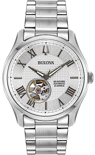 96A207 Bulova men's automatic movement analogue display functions just the time waterproof'ite' 10 atm water resistant steel case colour steel case casing silver steel strap colour steel strap