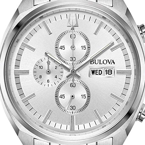 Bulova Men's Chronograph Watch from the Classic Surveyor Collection. Watch with 42 mm diameter steel case and dial with markers. Stainless steel strap with concealed clasp. Quartz Movement And Water Resistance Of 3 Atm. The reference is 96C135
