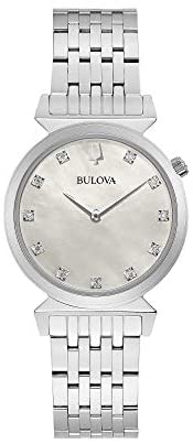 Bulova Women's Time Only Watch from the Classic Regatta Collection. Watch with steel case with a diameter of 30 mm. Silver coloured steel strap and folding clasp. Diamond indexes. Watch With Sapphire Glass, Screw Back And 11 Diamonds. Water Resistance Of 3 Atm. Quartz movement. The reference is 96P216