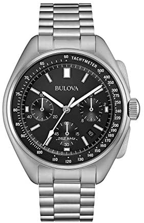 Bulova made space history on August 2, 1971 during the apollo 15 mission, a moon Pilot chronograph, customized for Lunar conditions by Bulova engineers, was worn on the moon. Now Bulova makes history again with the special edition Lunar Pilot chronograph, updated with our exclusive high performance quartz movement with a frequency of 262 kHz for unparalleled accuracy, continuing a history of precision timing.In stainless steel screw-back case in silver-tone finish and black dial and sapphire glass.