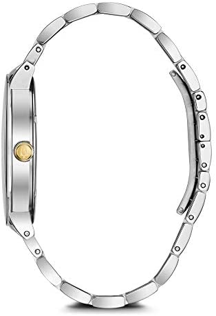 Product DescriptionFrom the futuro collection. In stainless steel with gold-tone accents and three diamonds individually hand set on silver-white dial, three-hand date feature, metalized edge-to-edge domed mineral crystal, screw-back case, gold-tone accented stainless steel bracelet with double-press deployant closure, and water resistance to 30 meters.Box ContainsWatch, Presentation box, Watch Cushion, Guarantee, Manuals and water resistant usage guide