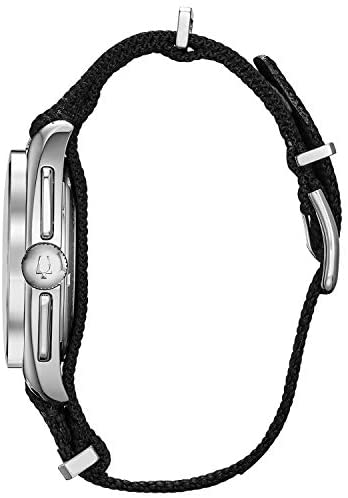Special Edition Lunar Pilot Chronograph from the Archive Series. Six-hand chronograph movement features proprietary high-performance quartz technology with 262 kHz vibrational frequency for precise accuracy. This new edition is complete with polished stainless steel case, black dial with white accents, anti-reflective curved sapphire crystal, black polyester NATO strap with three-piece buckle closure, and water resistance to 50 meters. Diameter: 45mm Thickness: 13. 5mm