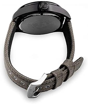 Classic men's sports watch from Citizen. The case is made of black stainless steel. The beige dial is decorated with date display, luminescent hands, black Arabic numerals and red details. A durable crystal glass protects the dial from external influences. The Citizen AW5005-12X is powered by the proven eco-drive technology. The case has a diameter of approx. 43mm A nylon bracelet in khaki guarantees a comfortable fit. The bracelet is securely closed with a pin buckle.