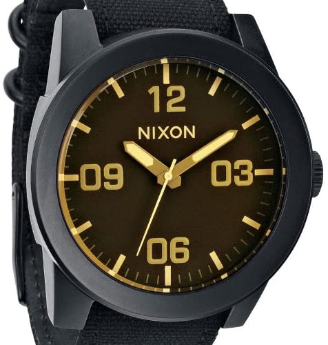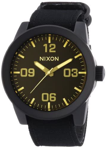 Features: Display: Analog, Display: 3-hands Housing material: Stainless steel Case diameter: 48 mm Embossed logo Movement: Miyota Japanese quartz 3 hand Band: 24 mm canvas Water Rating: 100 meters Manufacturer colour: matte black / orange tint Fabric: Metal, Textile
