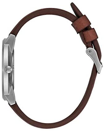 Features: Movement: Quartz Display: Analog, Display: 3-hands Rotating crown The new watch has been tested for a watertightness up to 5 bar which corresponds with an assumed water column of 50 meters or approx. 5 atmospheres/atm Mineral glass Housing material: Stainless steel Case diameter: 40 mm Band material: Leather Strap Width: 20 - 18 mm Closure: Buckle Embossed logo Manufacturer colour: blue / brown / cali Fabric: Stainless steel, Leather