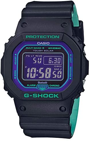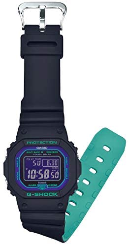Brand Name G-Shock Model number GW-B5600BL-1JF Part Number GW-B5600BL-1JF Model Year 2019 Item Shape Rectangular Case material Resin Band Material Plastic Band Color Black Dial color Purple Special features Timer, Stop watch, World time Item weight 53 Grams Movement Quartz