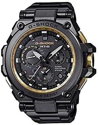 GPS HYBRID WAVE CEPTOR Black × Gold This latest MT-G model combines metal and resin in a way that adds a touch of elegance to G-SHOCK toughness. The base model is the MTG-G1000, which is equipped with GPS HYBRID WAVE CEPTOR that receives position and time information from GPS satellites, and time calibration signals from six transmitters around the globe. The black parts of the case and band have a diamond-like carbon finish, while the face, buttons, and crown have a gold ion plated finish.The result is an intrepidly elegant look.