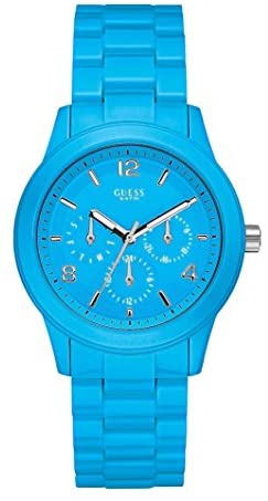 Brand : GUESS Model : W11603L5 Collection : Ladies Gender : Women´s Time Indication : Analogue Functions : Multifunction Mechanism : Quartz Case Material : Stainless Steel Color Sphere : Blue Material of Strap : Resin Color of Strap : Blue Type of Closure : Deployment Buckle Waterproof : Water Resistant Calendar : Date Case Dimensions : 38 mm. of case excluding crown Luminescent : Yes Glass : Mineral