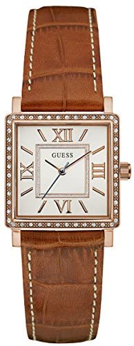 Watch Guess Highline For Women. Brown leather strap and stainless steel square box with shiny rhinestones. Analog movement.