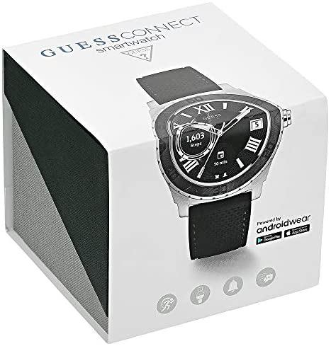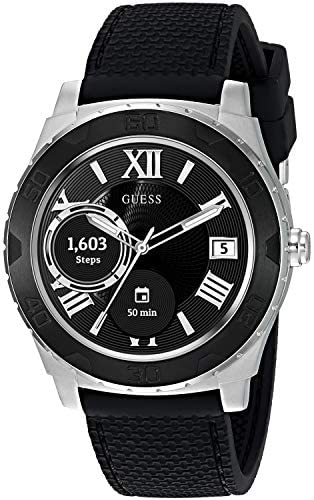 Brand Name GUESS Model number C1001G1 Part Number C1001G1 Item Shape Round Case material Stainless Steel Band Material Guess Band length 9.25 inches Band width 21 millimetres Band Color Black Dial color Multicolor Bezel material Stainless Steel Special features text_messaging, android, fitness_tracker Item weight 91 Grams Movement Quartz