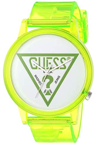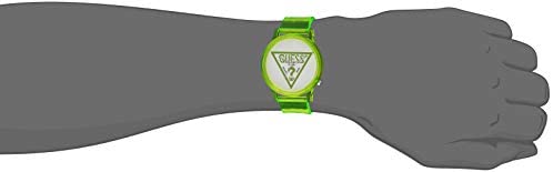Brand Name GUESS Model number V1018M6 Part Number V1018M6 Item Shape Round Case material Rubber Band Material Plastic Band length standard length Band width 18 millimetres Band Color Green Dial color white Bezel material Rubber Special features Calendar Movement Quartz