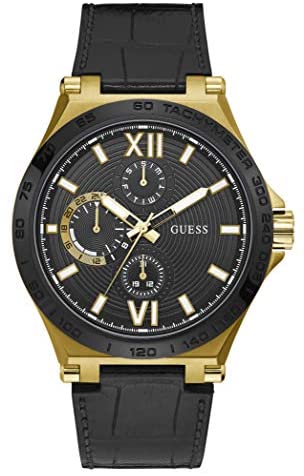 Brand Name GUESS Model number GW0204G1 Part Number GW0204G1 Item Shape Round Case material Stainless Steel Band Material Leather Band length Mens Standard Band width 24 millimetres Band Color Black Dial color Black Bezel material Stainless Steel Movement Quartz
